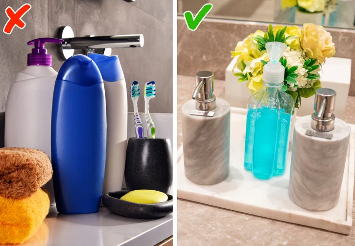 Βεβαιωθείτε ότι οι διανομείς σαπουνιού, τα δοχεία και οι θήκες οδοντόβουρτσας ταιριάζουν μεταξύ τους. Με αυτόν τον τρόπο, το μπάνιο σας θα φαίνονται πιο οργανωμένο. Πολλά καταστήματα πουλούν φθηνά σετ, και αν η ποικιλία σας μπερδεύει, απλώς επιλέξτε ουδέτερα χρώματα και μινιμαλιστικά σχέδια.