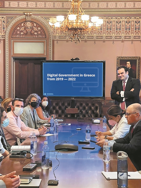 Η πρόσκλησή μας είχε ως αντικείμενο να παρουσιάσουμε στους αμερικανούς ιθύνοντες το ελληνικό case study της τελευταίας τριετίας. Εκείνο που έκανε ιδιαίτερη εντύπωση ήταν η αρχιτεκτονική, η διάρθρωση, η επανίδρυση ουσιαστικά του υπουργείου Ψηφιακής Διακυβέρνησης, μια επανίδρυση που πραγματοποιήθηκε σε θεσμικό αλλά και σε τεχνικό επίπεδο και οφείλεται στη σχετική απόφαση του Πρωθυπουργού Κυριάκου Μητσοτάκη. Από το 2019 και μετά τολμήσαμε και φέραμε κάτω από την ίδια στέγη κρίσιμες και κομβικές υπηρεσίες και φορείς που διοικούν σημαντικά πεδία των ηλεκτρονικών υπηρεσιών και του ψηφιακού κράτους που ως τότε υπάγονταν σε διαφορετικά υπουργεία. Με αυτόν τον τρόπο, καταργώντας τις περιττές συναρμοδιότητες, κατορθώσαμε να ενεργοποιήσουμε το ψηφιακό κράτος και να μεταφέρουμε με ταχύτατο ρυθμό υπηρεσίες από το φυσικό στο ψηφιακό πεδίο, από το χαρτί στην οθόνη, από το γκισέ στον υπολογιστή ή στο κινητό. Πρόκειται για μια αλλαγή νοοτροπίας και φιλοσοφίας για το «τι είναι κράτος», για δραστικό περιορισμό του κατακερματισμού ενός μεγάλου πεδίου κρατικής και πολιτικής δράσης, για συνένωση και συμπύκνωση.