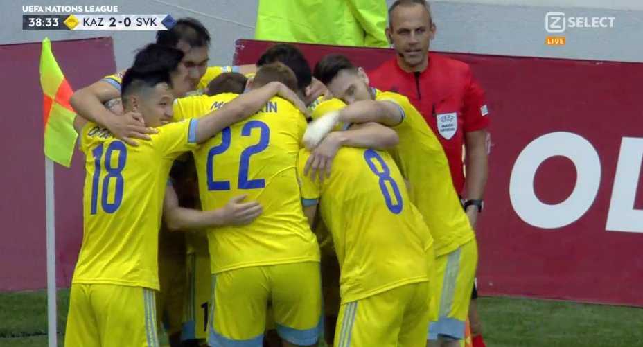 Σημαντικότατο βήμα για την πρωτιά του 3ου ομίλου της League C του Nations League και της ανόδου στη μεγαλύτερη κατηγορία έκανε το Καζακστάν στην έδρα του, όπου επικράτησε με 2-1 της Σλοβακίας στο ντέρμπι της 4ης αγωνιστικής.