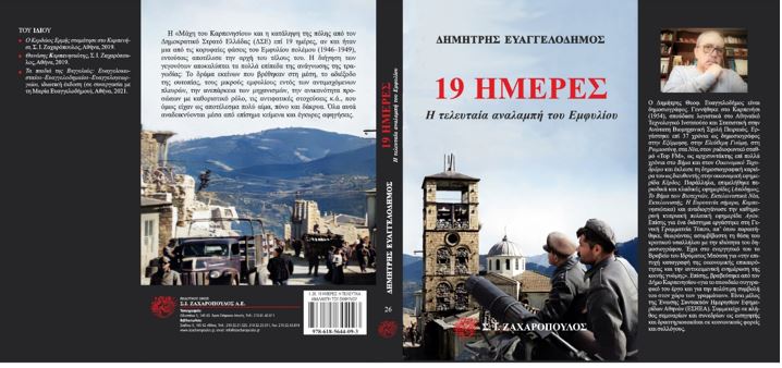 Μετά το «Ο Κερδώος Ερμής σταμάτησε στο Καρπενήσι» με την οικονομική και εμπορική ιστορία της πόλης, τον «Θανάση Καρπενησιώτη» με την μυθιστορηματική βιογραφία του ήρωα του 1821 που έπεσε στο Σκουλένι και «Τα παιδιά της Βαγγελιώς» με την ιστορία τριών οικογενειών με κοινή ρίζα (Ευαγγελοδημαίοι, Ευαγγελοκωσταίοι και Ευαγγελογεωργαίοι) και καθώς και την ιστορία του τόπου καταγωγής τους, του Ραπτόπουλου Ευρυτανίας, ένα ακόμη βιβλίο του δημοσιογράφου Δημήτρη Θ. Ευαγγελοδήμου βρίσκεται στις προθήκες των βιβλιοπωλείων –συμβολή στην εξιστόρηση της πιο τραγικής περιόδου της ελληνικής ιστορίας. Πρόκειται για το βιβλίο με τίτλο «19 ΗΜΕΡΕΣ –Η τελευταία αναλαμπή του Εμφυλίου», που όπως υποδηλοί ο τίτλος του, αναφέρεται στον τελευταίο χρόνο του αιματηρού Εμφυλίου Πολέμου, αναλαμπή του οποίου για τους αντάρτες αποτέλεσε η κατάληψη και ο έλεγχος του Καρπενησίου επί 19 ημέρες προτού αρχίσει η κατάρρευση του Δημοκρατικού Στρατού.