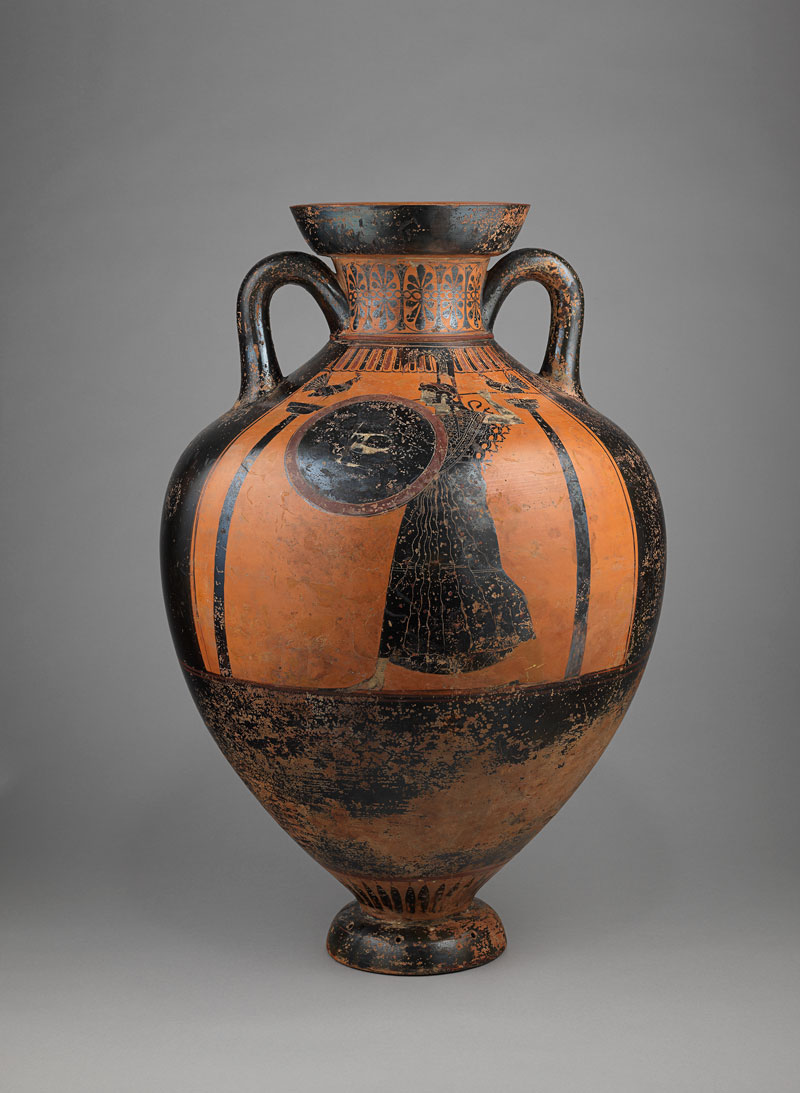 Οι αμφορείς από το Βασιλικό Μουσείο του Οντάριο, τοποθετημένοι στην Αίθουσα του Παρθενώνα συνδιαλέγονται με τη ζωφόρο του μεγάλου ναού, στην οποία ο Φειδίας και οι συνεργάτες του λάξευσαν αριστουργηματικά την πομπή της γιορτής των Παναθηναίων.