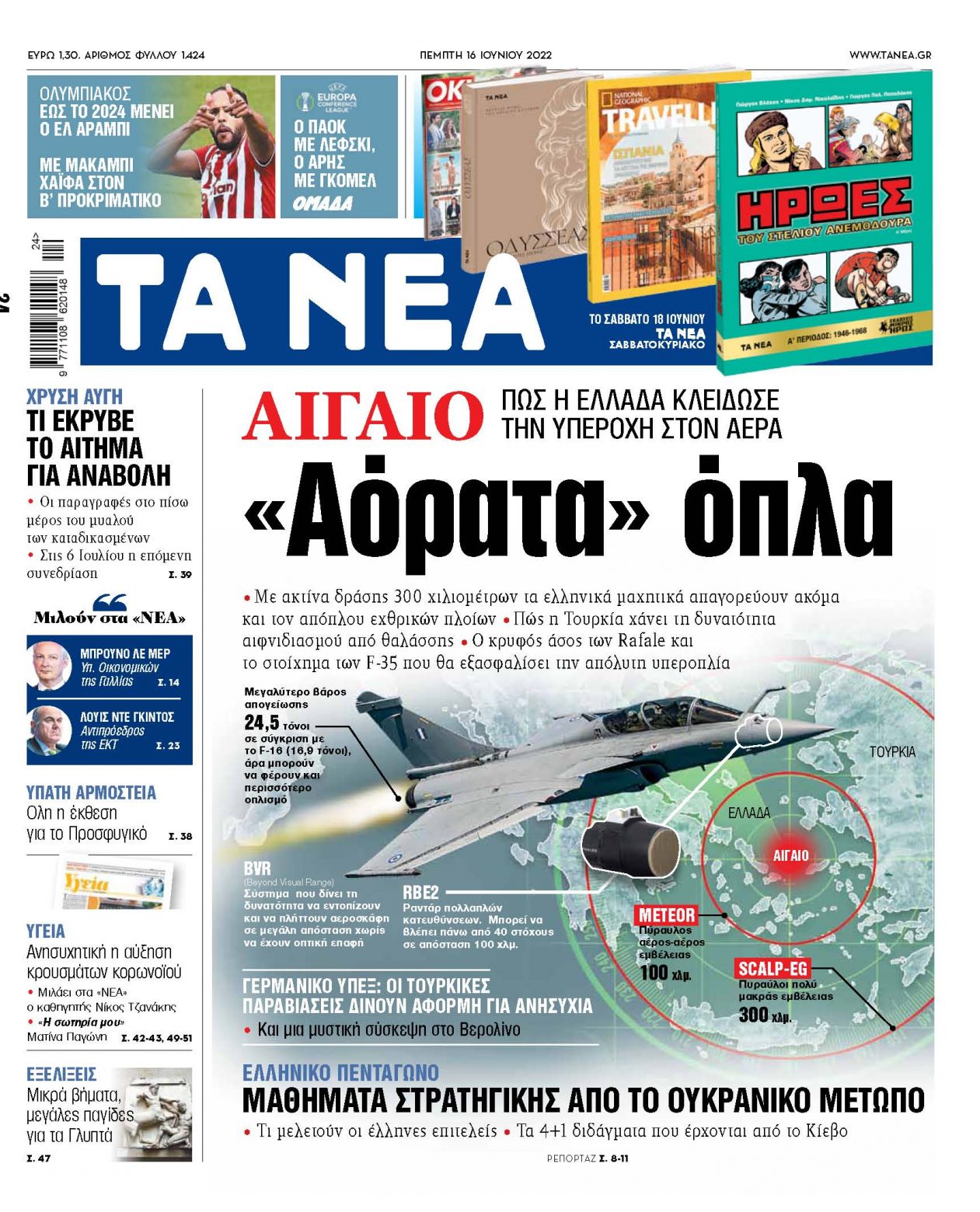 •Με ακτίνα δράσης 300 χιλιομέτρων τα ελληνικά μαχητικά απαγορεύουν ακόμα και τον απόπλου εχθρικών πλοίων •Πώς η Τουρκία χάνει τη δυνατότητα αιφνιδιασμού από θαλάσσης •Ο κρυφός άσος των Rafale και το στοίχημα των F-35 που θα εξασφαλίσει την απόλυτη υπεροπλία