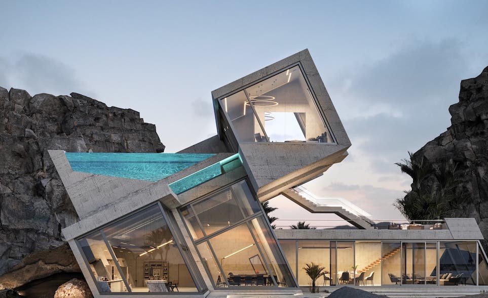 Το σπίτι τοποθετείται στη νησιωτική χώρα της Βόρειας Ευρώπης και η μορφή του θυμίζει αναποδογυρισμένο κοντέινερ.