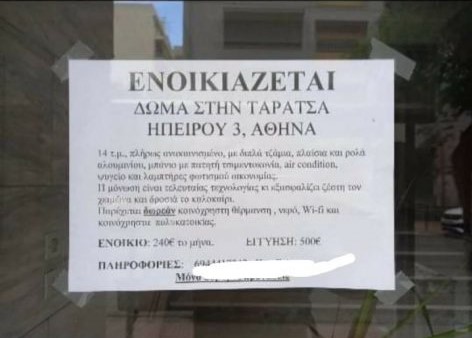 Αν αναρωτιέστε κι εσείς πώς τελικά βρίσκουν ενοικιαστές, η απάντηση είναι η συγκατοίκηση και ο τεράστιος περιορισμός οποιονδήποτε άλλων εξόδων, από ένα απλό βράδυ στην πόλη, μέχρι ένα ταξίδι. Πράγματα που ούτε είναι πολυτέλειες, ούτε και πρέπει να θεωρούνται τέτοιες.
