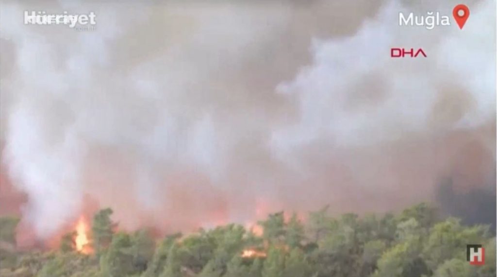 Μεγάλες πυρκαγιές στη Μαρμαρίδα – Επιθεώρηση Ερντογάν από ελικόπτερο