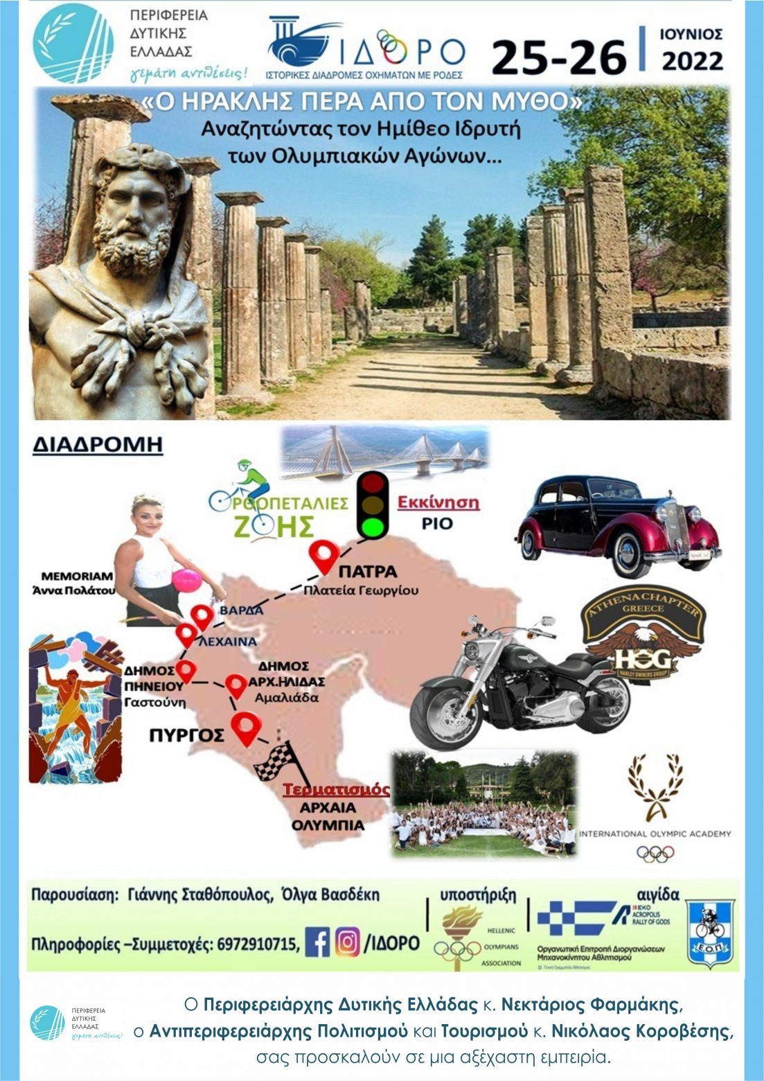 «Ακολουθώντας τις ιστορικές διαδρομές που δίνει η ελληνική μυθολογία και η εμβληματική προσωπικότητα του μυθικού Ηρακλή καθώς και η παγκόσμιας απήχησης Αρχαία Ελληνική Ιστορία, αναπόσπαστο στοιχείο της οποίας είναι και οι Ολυμπιακοί Αγώνες, με ένα σύνολο ποικιλόμορφων δράσεων, θα συμβάλλουμε στην γνωστοποίηση της ιστορίας των περιοχών της Δυτικής Ελλάδας» αναφέρεται στη σχετική ανακοίνωση.