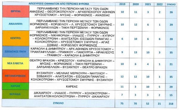 Συνολικά στο Βύρωνα εντοπίστηκαν 711 οχήματα στα οποία επικολλήθηκε η ειδική σήμανση του εγκαταλελειμμένου οχήματος, όπως ορίζει ο νόμος και αναμένονται να τηρηθούν οι νόμιμες διαδικασίες απομάκρυνσης τους.