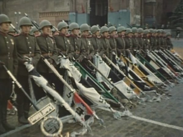 Την παρέλαση άνοιξαν 230 στρατιώτες που βαστούσαν σημαίες με τη σβάστικα. Ήταν ένα μικρό μέρος από σημαίες, λάβαρα και διακριτικά μεγάλων Γερμανικών στρατιωτικών μονάδων που τις είχαν παρατήσει βάζοντας το στα πόδια μετά από μάχες με τους Σοβιετικούς.