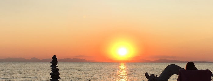Μπορεί τις ώρες αιχμής να βουλιάζει από κόσμο, πράγμα που μας κάνει να το απαρνιόμαστε για τα μάτια άλλων πιο «κρυφών» παραλιών, όμως το ηλιοβασίλεμά του, με τον ήλιο να χάνεται πίσω από το νησάκι του, είναι πραγματικά φαντασμαγορικό.