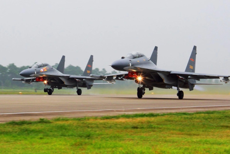 Οι ένοπλες δυνάμεις της Κίνας κατήγγειλαν σήμερα την πρόσφατη υπερπτήση αμερικανικού αεροσκάφος ναυτικής συνεργασίας πάνω από τον πορθμό της Ταϊβάν, υπογραμμίζοντας ότι διατάραξε εσκεμμένα την περιφερειακή σταθερότητα και έθεσε σε κίνδυνο την ειρήνη (στη φωτογραφία αρχείου, επάνω, από Jin Danhua/Xinhua via AP, κινεζικά πολεμικά αεροσκάφη απογειώνονται από άγνωστη τοποθεσία).