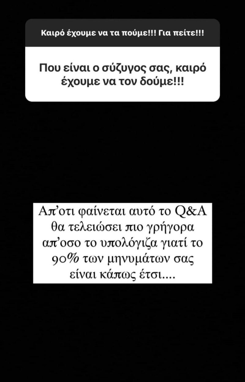 Σήμερα το απόγευμα, η Έλενα αποφάσισε να πραγματοποιήσει ένα QnA και στις ερωτήσεις που δέχτηκε, οι περισσότερες αφορούσαν την απουσία του παλαίμαχου ποδοσφαιριστή από την καθημερινότητά της.