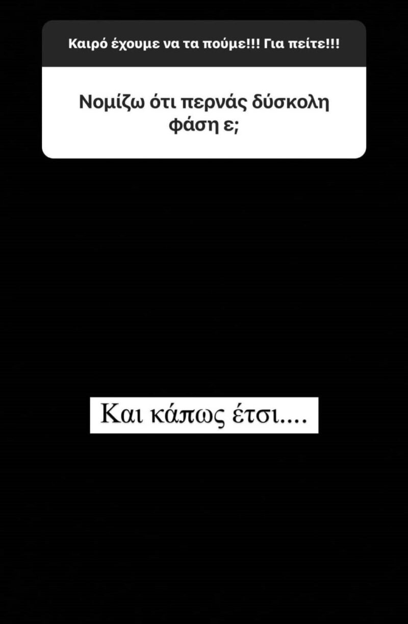 Μπορεί να πραγματοποίησε διάφορες αλλαγές στη ζωή της, όπως το νέο της μαγαζί με παπούτσια στη Νέα Ερυθραία, τις οποίες μοιραζόταν διαρκώς με τους διαδικτυακούς της φίλους στο Instagram, ωστόσο για τη μεγάλη αλλαγή στα προσωπικά της δεν είχε βρει τη δύναμη να μιλήσει, μέχρι το απόγευμα της Κυριακής.