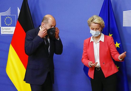 Ο Καγκελάριος της Γερμανίας Όλαφ Σολτς και η πρόεδρος της Ευρωπαϊκής Επιτροπής Ούρσουλα Φον ντερ Λάϊεν σε πρόσφατη συνάντησή τους με μάσκες. Μάσκες κατά του κορωνοϊού ή για την προστασία τους από το διοξείδιο του άνθρακα, μια και οι δυο τους κατάντησαν από υπέρμαχοι των ανανεώσιμων πηγών ενέργειας, σε κήρυκες της επιστροφής στα ρυπογόνα κάρβουνα και τα πετρέλαια; Ποιος το περίμενε ότι η ΕΕ θα αυτοπαγιδευόταν στην επιστροφή στο παρελθόν, μετά τις κυρώσεις κατά της Ρωσίας;