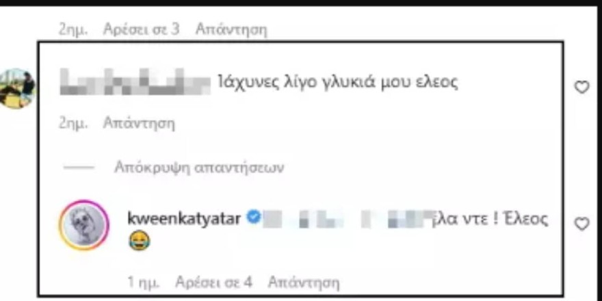 «Πάχυνες λίγο γλυκιά μου έλεος», έγραψε ένας χρήστης, με την ίδια να απαντά: «Έλα ντε! Έλεος».