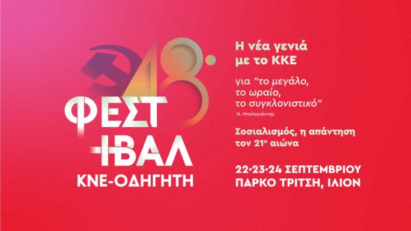 Στις 22-23-24 Σεπτεμβρίου θα γίνει φέτος το 48o Φεστιβάλ ΚΝΕ – Οδηγητή, στο πάρκο Τρίτση, στο Ίλιον. Το κεντρικό σύνθημα: «Η νέα γενιά με το ΚΚΕ για “το μεγάλο, το ωραίο, το συγκλονιστικό” – Σοσιαλισμός, η απάντηση τον 21ο αιώνα», είναι εμπνευσμένο από τα λόγια του Νίκου Μπελογιάννη, καθώς φέτος συμπληρώνονται 70 χρόνια από την εκτέλεσή του.