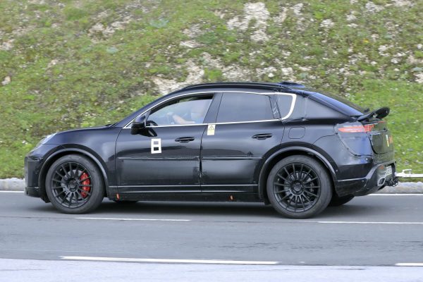 Σε προφίλ, η χάραξη της οροφής αποκτά μια ακόμα πιο coupe λογική σε σχέση με την μέχρι σήμερα γνωστή Macan, προφανώς προς όφελος της αεροδυναμικής ενώ, πίσω από τους τροχούς διακρίνονται οι εξαπίστονες δαγκάνες και τα μεγαλύτερου διαμετρήματος δισκόφρενα.