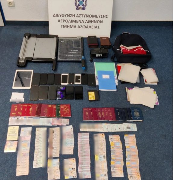 Σε έρευνες που διενεργήθηκαν βρέθηκαν και κατασχέθηκαν: 244 ταξιδιωτικά έγγραφα διαφόρων χωρών, εκ των οποίων τα 22 πλαστά και τα 222 γνήσια, φορητός υπολογιστής, 15 κινητά τηλέφωνα, το χρηματικό ποσό των 8.790 ευρώ και των 910 λιρών Αιγύπτου, 9 φωτογραφίες τύπου διαβατηρίου, 2 τετράδια σημειώσεων, τα οποία περιλαμβάνουν παραγγελίες ταξιδιωτικών εγγράφων, πλήθος δίφυλλων πλαστικοποίησης για την παραποίηση των προσωπικών δεδομένων ταξιδιωτικών εγγράφων ή την κατασκευή πλαστών ταξιδιωτικών εγγράφων, 2 συσκευές κοπής φωτογραφιών και εγγράφων και 121 θήκες διαβατηρίων.