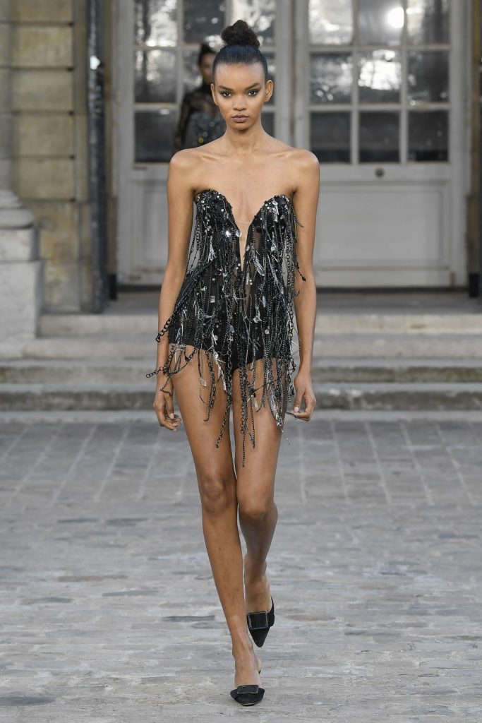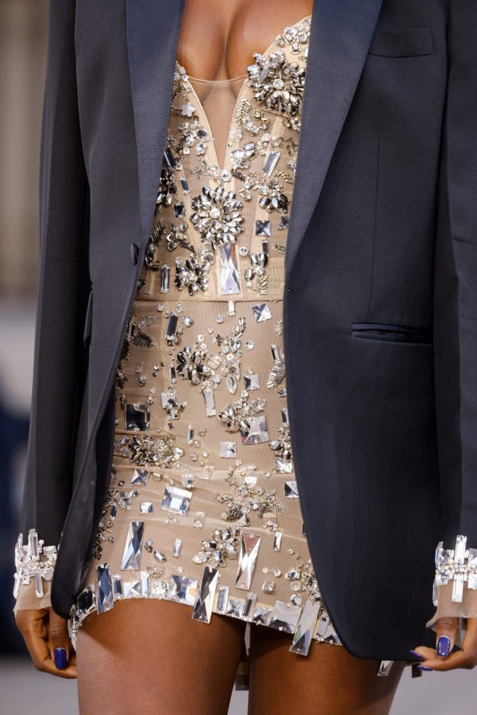 Στη φαντασμαγορική επίδειξη με τίτλο «Les années folles» η Celia Kritharioti εμπνευσμένη από τη δύναμη και την πληθωρικότητα της δεκαετίας του 1920 κατέπληξε με τις αξιοθαύμαστες δημιουργίες της που χαρακτηρίζονται από στοιχεία art deco, χρησιμοποιώντας το πολυτελές μαύρο και το πολύτιμο χρυσό. Τα περίτεχνα χειροποίητα κεντήματα είναι το σήμα κατατεθέν της σχεδιάστριας, κατάλληλα ώστε να αναδεικνύουν την ομορφιά του γυναικείου μπούστου. Επιπλέον, στην εντυπωσιακή συλλογή της δεν θα μπορούσαν να λείπουν τα λαμπερά mini dresses και two pieces, φτιαγμένα από βελούδο, χειροποίητες δαντέλες, μεταξωτό τούλι, οργάντζα και φτερά, τα οποία είναι ο καμβάς και η έμπνευση για τις ολοκαίνουριες δημιουργίες της “Couturier to the stars”, Celia Kritharioti.