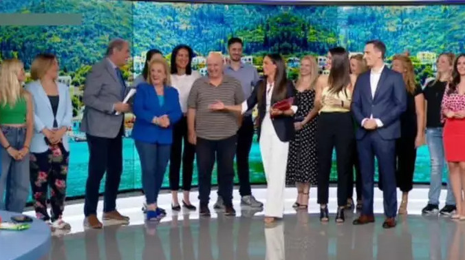 Αγκαλιασμένοι με όλους τους συνεργάτες τους στο πλατό, οι δύο δημοσιογράφοι ευχαρίστησαν τους τηλεθεατές και ανανέωσαν το ραντεβού τους για τα τέλη Αυγούστου.