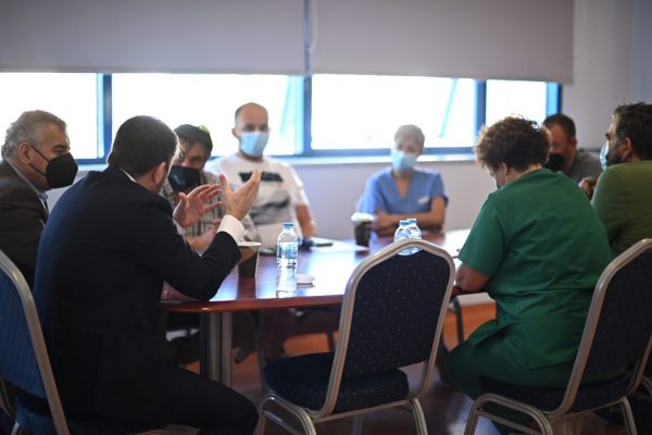«Είναι ιδιαίτερα κρίσιμο να δίνονται ισχυρά κίνητρα για νέο ανθρώπινο δυναμικό στον τομέα της Υγείας, που έχει τόση ανάγκη το νησί», ανέφερε ο κ. Ανδρουλάκης, συνομιλώντας με το διοικητικό και νοσηλευτικό προσωπικό.