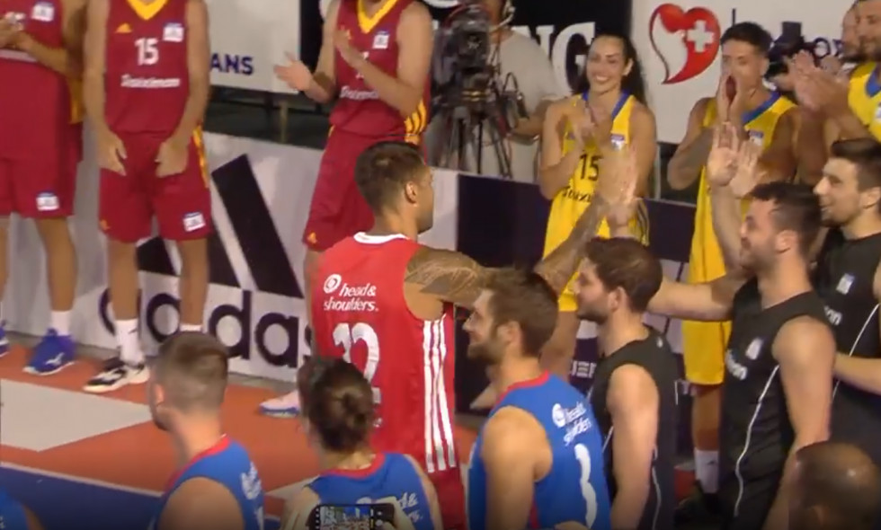 Ο πρώην παίκτης του Ολυμπιακού φόρεσε μια κόκκινη φανέλα με το νούμερο 15, έκανε high-five με όσους τον τίμησαν με την παρουσία τους και απόλαυσε την κάθε στιγμή στη διοργάνωση.