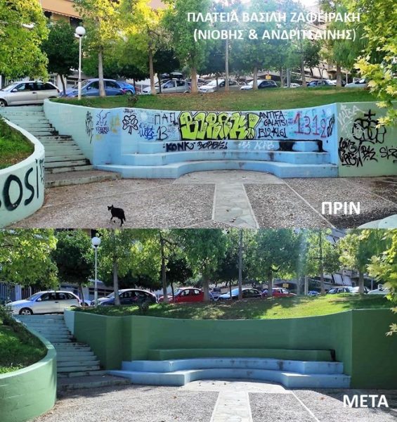 Σειρά είχαν οι πλατείες Βασίλη Ζαφειράκη (Νιόβης και Ανδριτσαίνης) και Μανώλη Γλέζου (πλ. Ελευθερίας), οι οποίες αναβαθμίστηκαν αισθητικά για άλλη μια φορά, καθώς βάφτηκαν ξανά εξολοκλήρου.