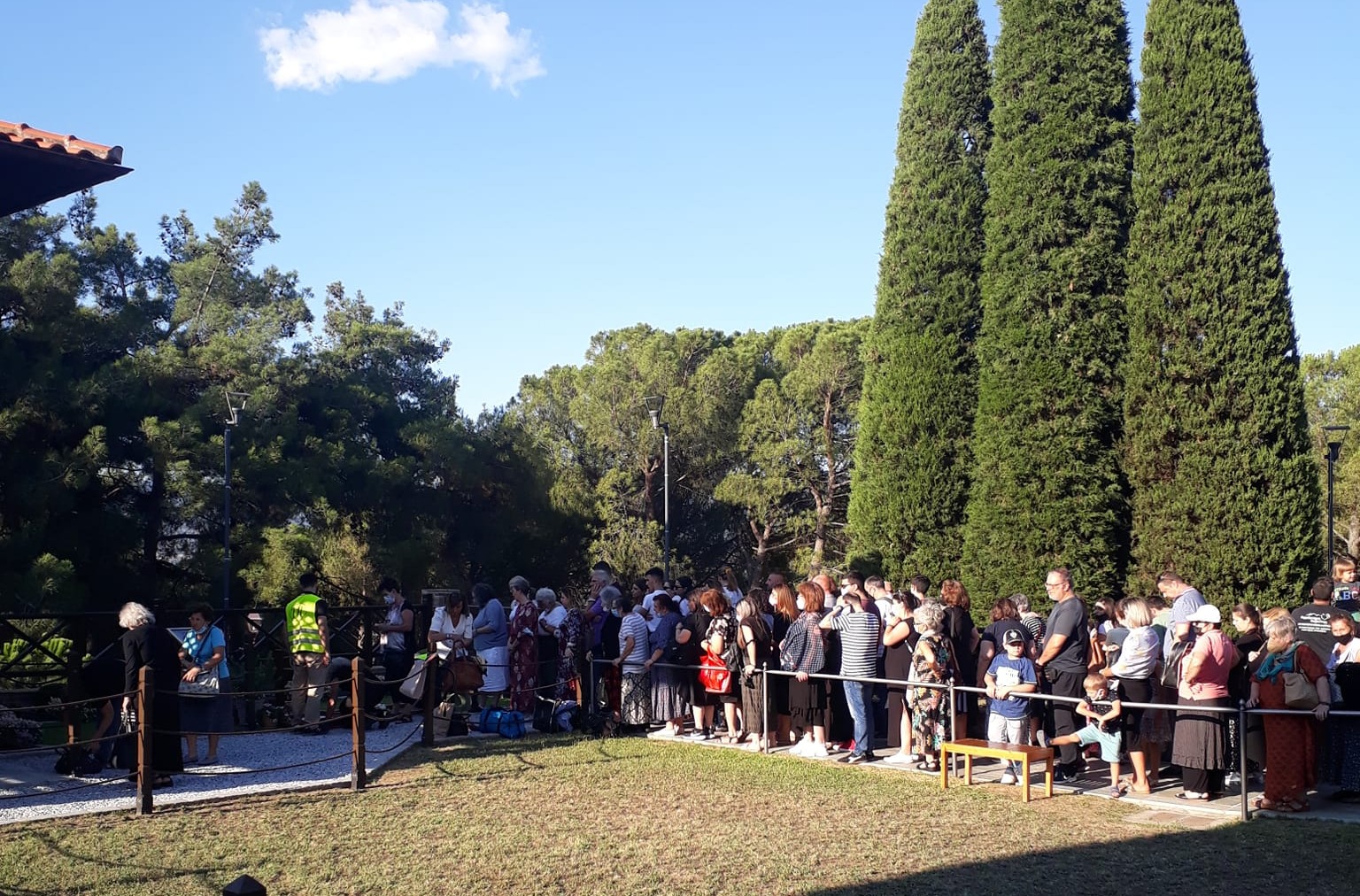 Από εχθές η προσέλευση των πιστών ήταν σταθερή αλλά περιορισμένη, και δεν θύμιζε σε τίποτε τα προ κοροναϊού χρόνια, με τις τεράστιες ουρές.