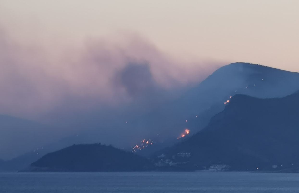 Σύμφωνα με την Πυροσβεστική, το έργο των δυνάμεών της, και των εθελοντών που συνδράμουν, δυσχεραίνουν οι ισχυροί άνεμοι που πνέουν στην περιοχή