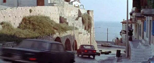 Η σκηνή είναι καθηλωτική και γυρίστηκε στον Πειραιά στο λιμάνι, στις ανηφόρες της Καστέλας, και στον Προφήτη Ηλία. Άλλες σκηνές αυτού του απίστευτου κυνηγητού γυρίστηκαν στα Τουρκοβούνια και στο Θησείο.