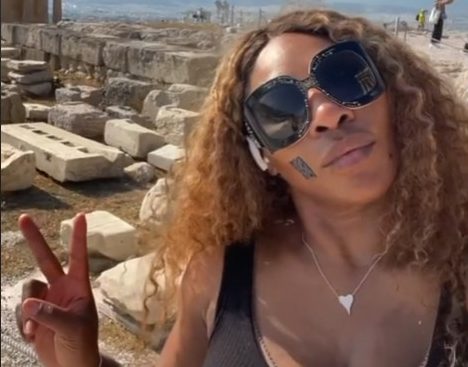 Σε αυτά εμφανίζεται είτε μόνη της, είτε με την οικογένειά της μπροστά από τα ιστορικά μνημεία και να τα αποθεώνει.