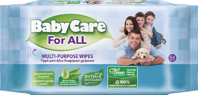Για εκείνο το παγωτό χωνάκι που έλιωσε στο χέρι, για εκείνη τη βόλτα με τον σκύλο που κάνατε λίγο πριν δύσει ο ήλιος, για τη φρουτόκρεμα που έχει μείνει στο χεράκι του μωρού σας… Τα Babycare For ALL σχεδιάστηκαν για όλες εκείνες τις στιγμές που χρειάζεστε αποτελεσματική καθαριότητα και απαλή φροντίδα για το δέρμα, για όλη την οικογένεια. Απαλά, ανθεκτικά, με ειδικά μελετημένη σύνθεση που περιέχει πράσινο τσάι και αγνό νερό, τα νέα Babycare For ALL φροντίζουν εσάς και την οικογένειά σας, κάθε στιγμή, αφήνοντας μια ευχάριστη αίσθηση καθαριότητας.