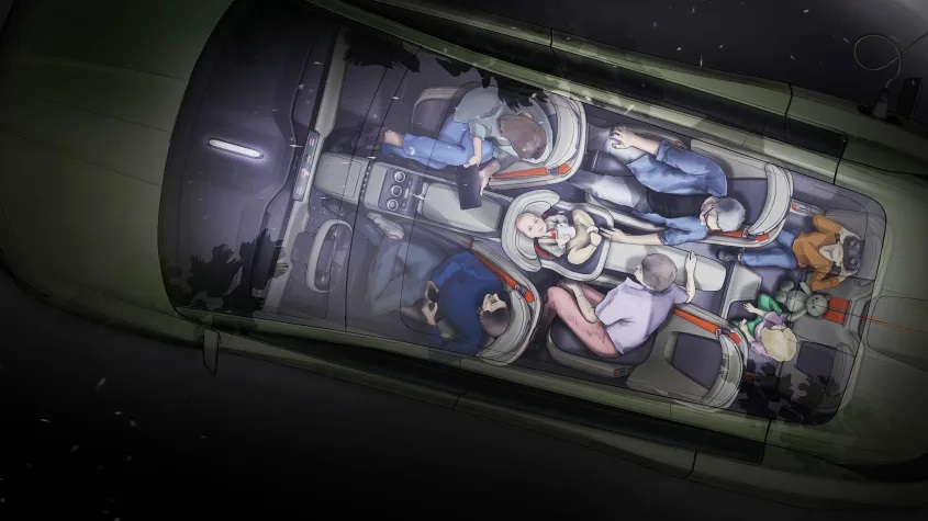 Στα χαρακτηριστικά που ξεχωρίζουν συγκαταλέγεται μια λωρίδα από LED στο πάνω μέρος του ταμπλό το οποίο χαρακτηρίζεται επίσης από την ευέλικτη διάταξή του καθώς σχεδιάστηκε με το σκεπτικό να προσφέρει ψυχαγωγία στον οδηγό ενόσω περιμένει να φορτίσει το αυτοκίνητό του. Με αυτή τη λογική ο πίνακας οργάνων και το τιμόνι αποσύρονται δίνοντας την θέση τους στην κεντρική οθόνη η οποία περιστρέφεται σε οριζόντια διαμόρφωση, δίνοντας την δυνατότητα στον οδηγό να πλοηγηθεί στο διαδίκτυο ή να παρακολουθήσει το αγαπημένο του πρόγραμμα σε κάποια συνδρομητική πλατφόρμα. Εκτός από τα παραπάνω, η δεύτερη και η τρίτη σειρά καθισμάτων φέρουν ενσωματωμένα backpacks για την αποθήκευση και την μεταφορά πραγμάτων αλλά και βάσεις για τάμπλετ προς όφελος της ψυχαγωγίας και των υπόλοιπων επιβατών.