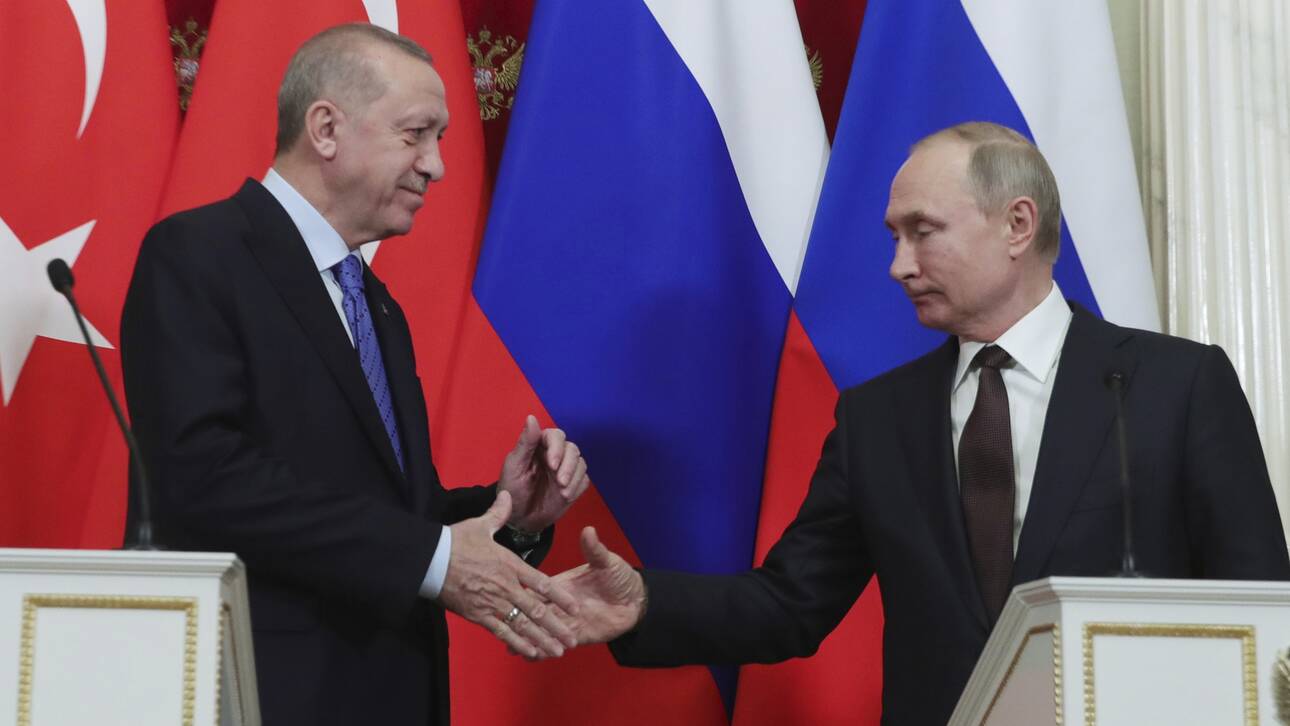 Η Τουρκία, η Αίγυπτος και η Σαουδική Αραβία ετοιμάζονται να ενταχθούν στην ομάδα χωρών BRICS , αναφέρει η ρωσική ιστοσελίδα Izvestia, επικαλούμενη την πρόεδρο αυτού του διεθνούς φόρουμ, Πουρνίμα Ανάντ (Ερντογάν και Πούτιν στη φωτογραφία αρχείου, επάνω, από Presidential Press Service via AP).
