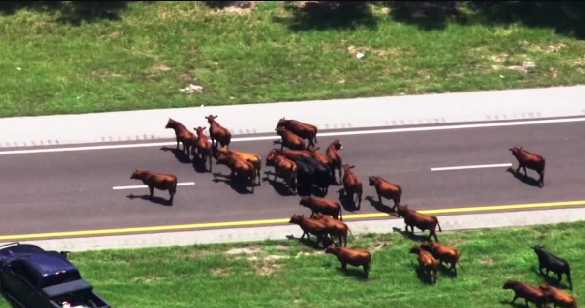 Ένα κοπάδι από περίπου 70 αγελάδες προκάλεσαν κυκλοφοριακό κομφούζιο σε δρόμο ταχείας κυκλοφορίας στη Φλόριντα των ΗΠΑ, όταν το φορτηγό που τις μετέφερε τυλίχτηκε στις φλόγες.