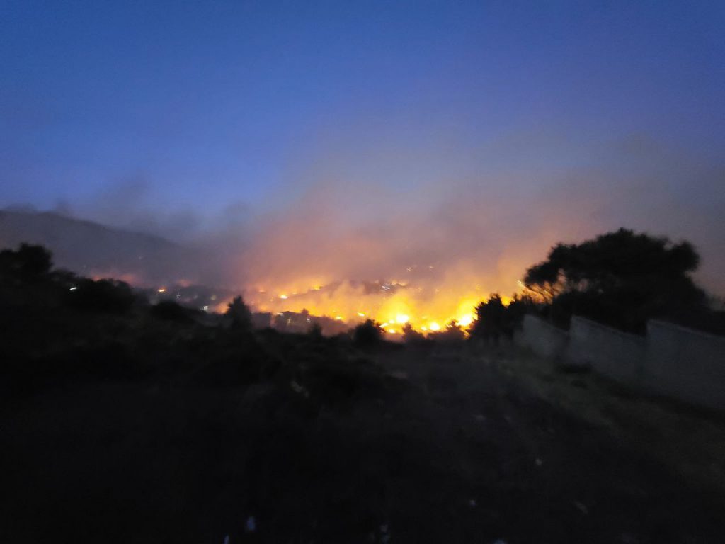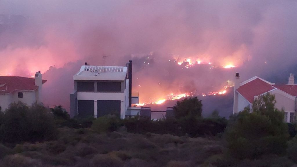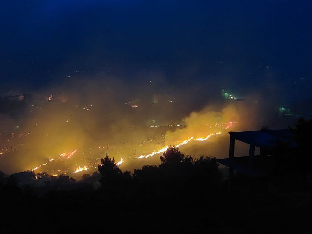 Αυτή τη στιγμή οι δυνάμεις της πυροσβεστικής έχουν να αντιμετωπίσουν δύο μέτωπα: ένα μέτωπο που κινείται αργά προς το βουνό και ένα δεύτερο (το δύσκολο μέτωπο) που κινείται νότια προς Ντράφι – Νέα Πεντέλη.