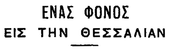 «Σήμερον την πρωΐαν παρά την Αγίαν Παρασκευήν ο Αθ. Κ., οδηγών το δίτροχον κάρρον του, κατέπεσεν εξ αφηνιάσεως του ίππου του και παρασυρθείς υπό τους τροχούς εφονεύθη».