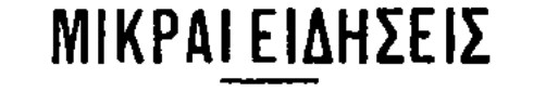 Μία από τις πιο αδικημένες ίσως κατηγορίες της ειδησεογραφίας είναι οι λεγόμενες «Μικρές Ειδήσεις», πάντοτε στον Τύπο προτεραιότητα, και σε όγκο ύλης και σε θέση ως προς τη σελιδοποίηση, είχαν, εύλογα, η πολιτική, τα διεθνή νέα και η οικονομία.
