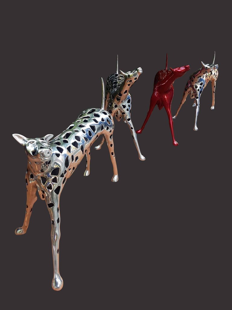 Ανάμεσα στα γλυπτά που θα εκτεθούν, θα υπάρχουν και γλυπτικές εγκαταστάσεις με τους γνωστούς κόκκινους ακροβάτες-χορευτές όπως αυτοί του έργου METEORON, το οποίο εγκαταστάθηκε πρόσφατα στην παραλία της Θεσσαλονίκης, καθώς και άλλων ανάλογων γλυπτών μνημειακών διαστάσεων, εγκατεστημένων σε δημόσιους χώρους και πλατείες στην Ευρώπη, την Αμερική και την Κίνα.