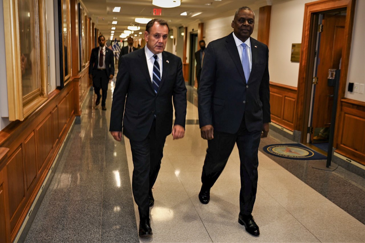 Με τους χάρτες ανά χείρας επισκέφθηκε το αμερικανικό Πεντάγωνο ο υπουργός Εθνικής Άμυνας, Νίκος Παναγιωτόπουλος, ο οποίος χθες Δευτέρα είχε, στην Ουάσιγκτον συνάντηση με τον αμερικανό ομόλογο του Λόιντ Όστιν.