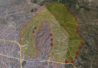 Ο αέρας ήταν η αιτία που η φωτιά που ξεκίνησε στις 17:19, όπως φαίνεται και από την παρακάτω εικόνα που δημοσίευσε η ΕΡΤ, επεκτάθηκε στις γύρω περιοχές και μάλιστα πολύ γρήγορα.