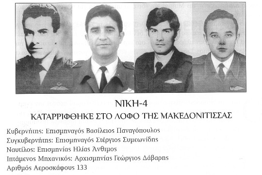 Δυστυχώς, το αεροσκάφος «ΝΙΚΗ-4», ενόσω βρισκόταν σε διαδικασία προσγείωσης, κατέπεσε εξαιτίας των πυρών της Εθνικής Φρουράς, με αποτέλεσμα να σκοτωθούν οι 27 από τους 28 καταδρομείς που επέβαιναν σε αυτό (διασώθηκε ως εκ θαύματος μόνο ο καταδρομέας Θανάσης Ζαφειρίου), καθώς και τα τέσσερα μέλη του πληρώματος.