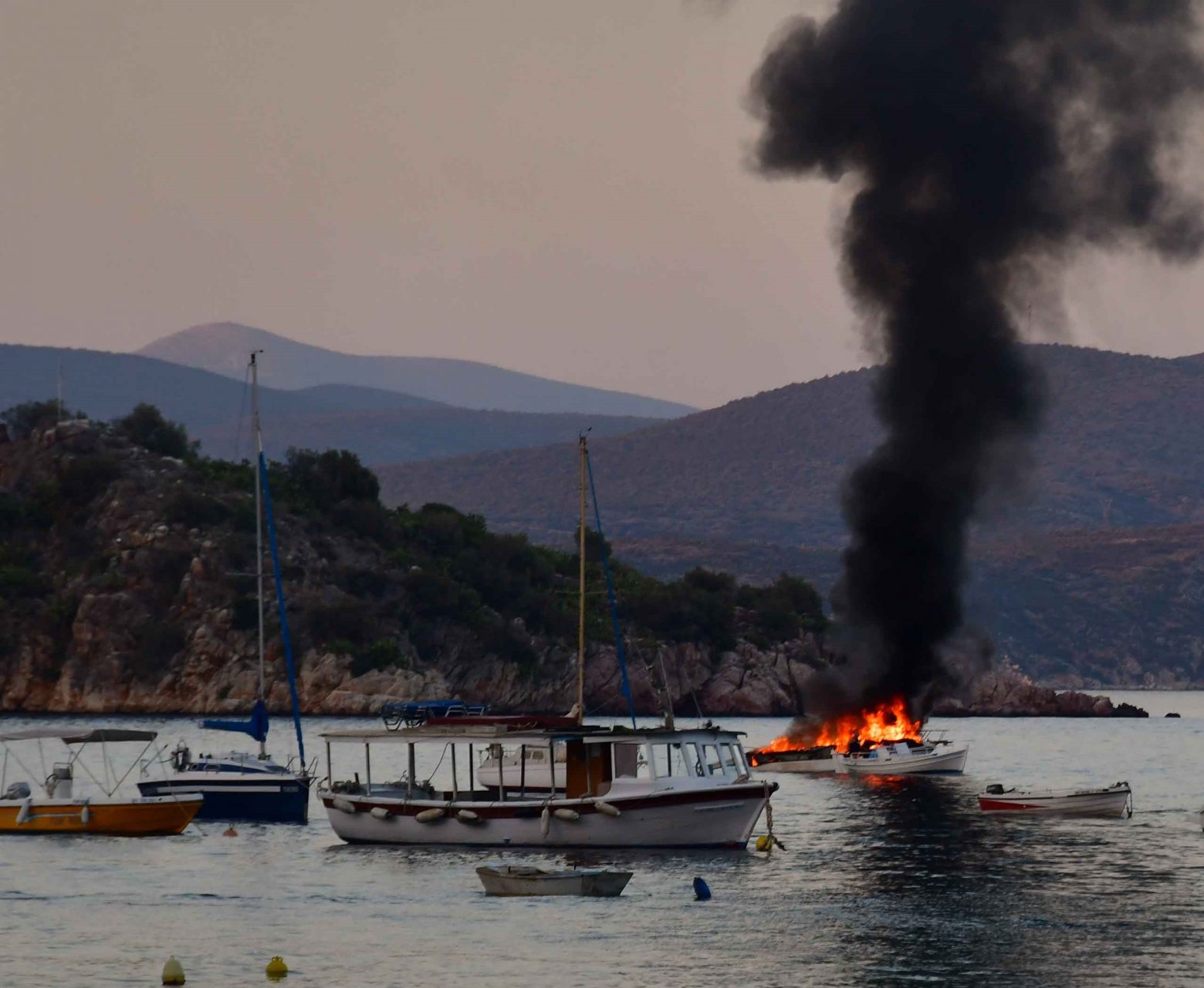 Για άγνωστο μέχρι στιγμής λόγο σημειώθηκε δυνατή έκρηξη, με αποτέλεσμα το σκάφος να τυλιχθεί στις φλόγες και οι επιβάτες να πέσουν στη θάλασσα για να σωθούν.