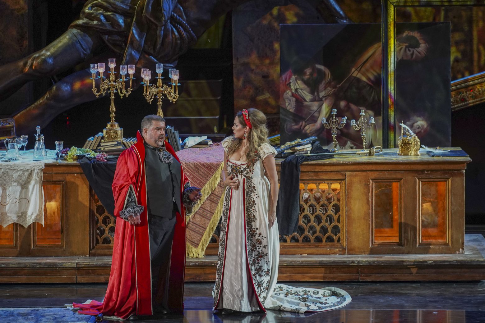 Στον ρόλο του Σκάρπια οι δύο κορυφαίοι Έλληνες βαρύτονοι με τη διεθνή καριέρα, ο Δημήτρης Πλατανιάς (28 & 30/7) και ο Τάσης Χριστογιαννόπουλος (29 & 31/7).
