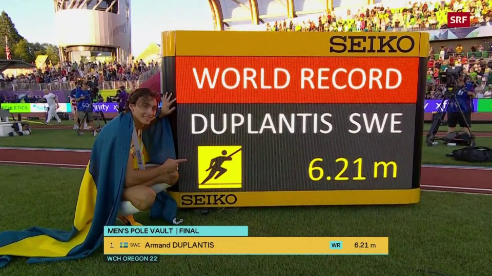 Ο Αρμαντ Ντουπλάντις δεν είχε αντίπαλο ούτε στο Γιουτζίν και πήρε ένα ακόμη χρυσό μετάλλιο σε μεγάλη διοργάνωση, σημειώνοντας νέο παγκόσμιο ρεκόρ με 6,21μ.
