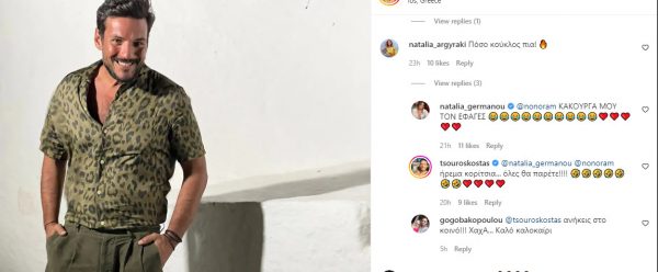 Ανάμεσα σε αυτά παρατηρήσαμε και σχόλιο της Ναταλίας Αργυράκη η οποία έγραψε “Πόσο κούκλος είσαι” ενώ ακολούθησε απάντηση της Ναταλίας Γερμανού και χιουμοριστική στιχομυθία της με την Ελεονώρα Μελέτη με… “μήλον της Έριδος” τον Κώστα Τσουρό.
