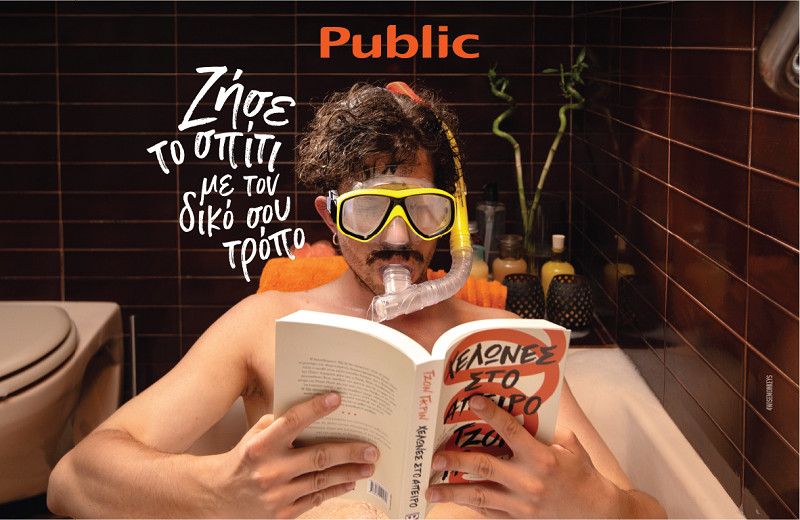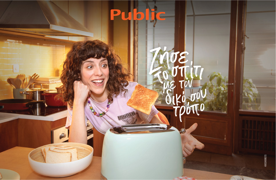 Λίγα λεπτά αφού επέστρεψα στο σπίτι, απόρησα με… την απορία μου. Γιατί αρκούσε να ανοίξω την τηλεόραση για να δω το – τρομερά fun – spot των Public, μια παραγωγή της Arcadia Productions, με την υπογραφή της 4 Wise Monkeys σε σκηνοθεσία του Luciano Ruiz και γυρίσματα σε Ελλάδα και Κύπρο. Έχοντας ήδη βρεθεί και σε ένα από τα φυσικά καταστήματα που φιλοξενούν τη νέα κατηγορία προϊόντων (υπάρχει, άραγε, πλέον κάτι που δεν πωλείται στα Public ή το Public Marketplace;), μπορούσα να επιβεβαιώσω ότι το σύνθημα «Ζήσε το σπίτι με τον δικό σου τρόπο» γίνεται πράξη με τη βοήθεια του εξειδικευμένου προσωπικού.