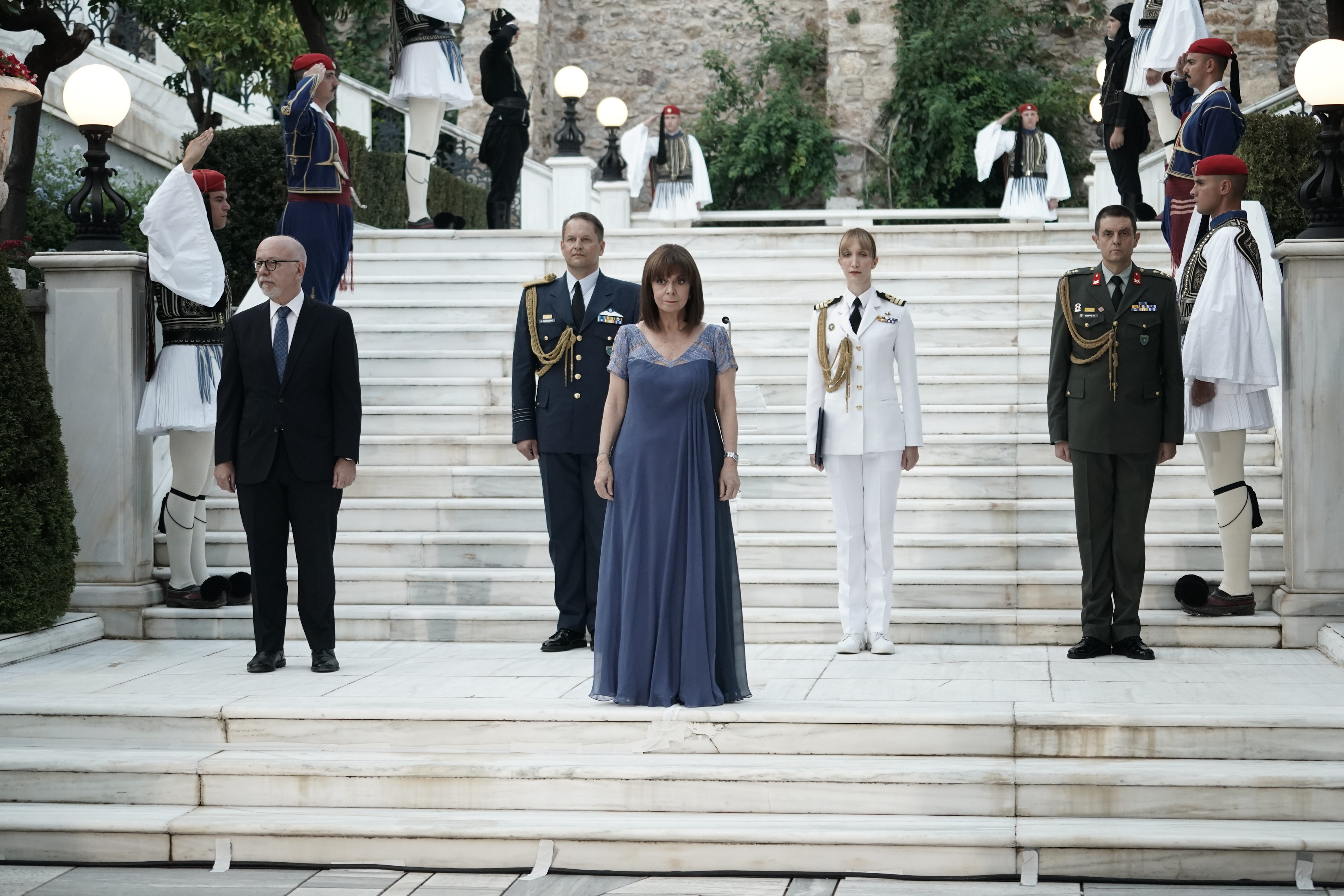 Είδα την Πρόεδρο της Δημοκρατίας– με το μακρύ, σ’ όλες τις αποχρώσεις του γαλάζιου, κομψό της ειν’ αλήθεια, φόρεμά -σαν την Άτοσσα της Κάκιας Παναγιώτου σε σκηνοθεσία του πάλαι ποτέ Τάκη Μουζενίδη. Και επίσης διάβασα την επόμενη τους επαίνους και τις επικρίσεις για όσα είπε, όχι ως «συνταξιούχος δικαστικός» (Ν. Φίλης), ούτε ως θεσμός», αλλά -κατά τη γνώμη μου- ως ηθοποιός ο οποίος αναπαριστά κάτι που δεν παύει να προηγείται και συγχρόνως να καθυστερεί.