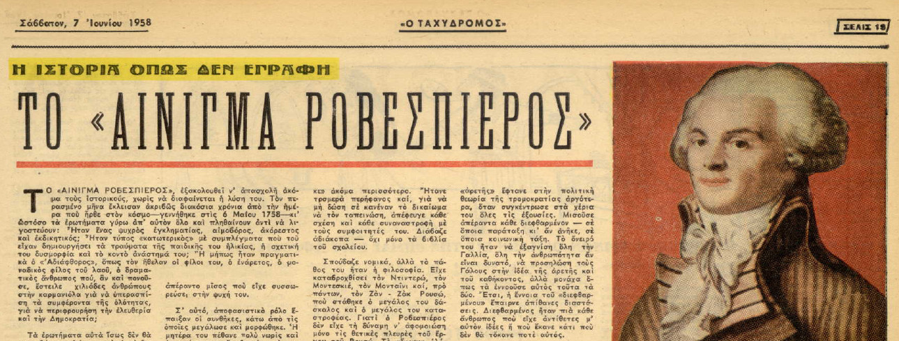 Ο Παταζτής αφηγείται στον «ΤΑΧΥΔΡΟΜΟ», το 1954 τις τελευταίες στιγμές του Ροβεσπιέρου.