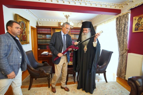 Ο κ. Ντογιάκος προσέφερε ως δώρο στον Σεβασμιώτατο μία Επισκοπική βακτηρία, ενώ ο Σεβασμιώτατος του προσέφερε μία εικόνα του προστάτη του Δικαστικού Σώματος, Αγίου Διονυσίου του Αρεοπαγίτου.