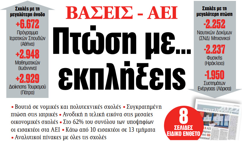Βάσεις - ΑΕΙ • Βουτιά σε νομικές και πολυτεχνικές σχολές • Στο 62% του συνόλου των υποψηφίων οι εισακτέοι στα ΑΕΙ • Αναλυτικοί πίνακες με όλες τις σχολές